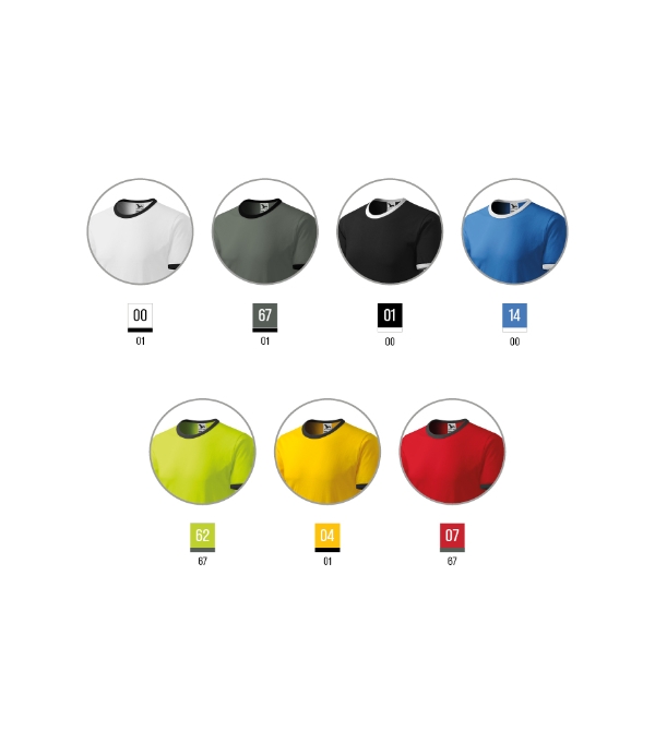 biela/čierna, tmavá bridlica/čierna, čierna/biela, svetlomodrá/biela, žltá/čierna, červená/tmavá bridlica, limetková/tmavá bridlica